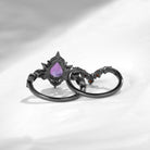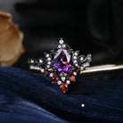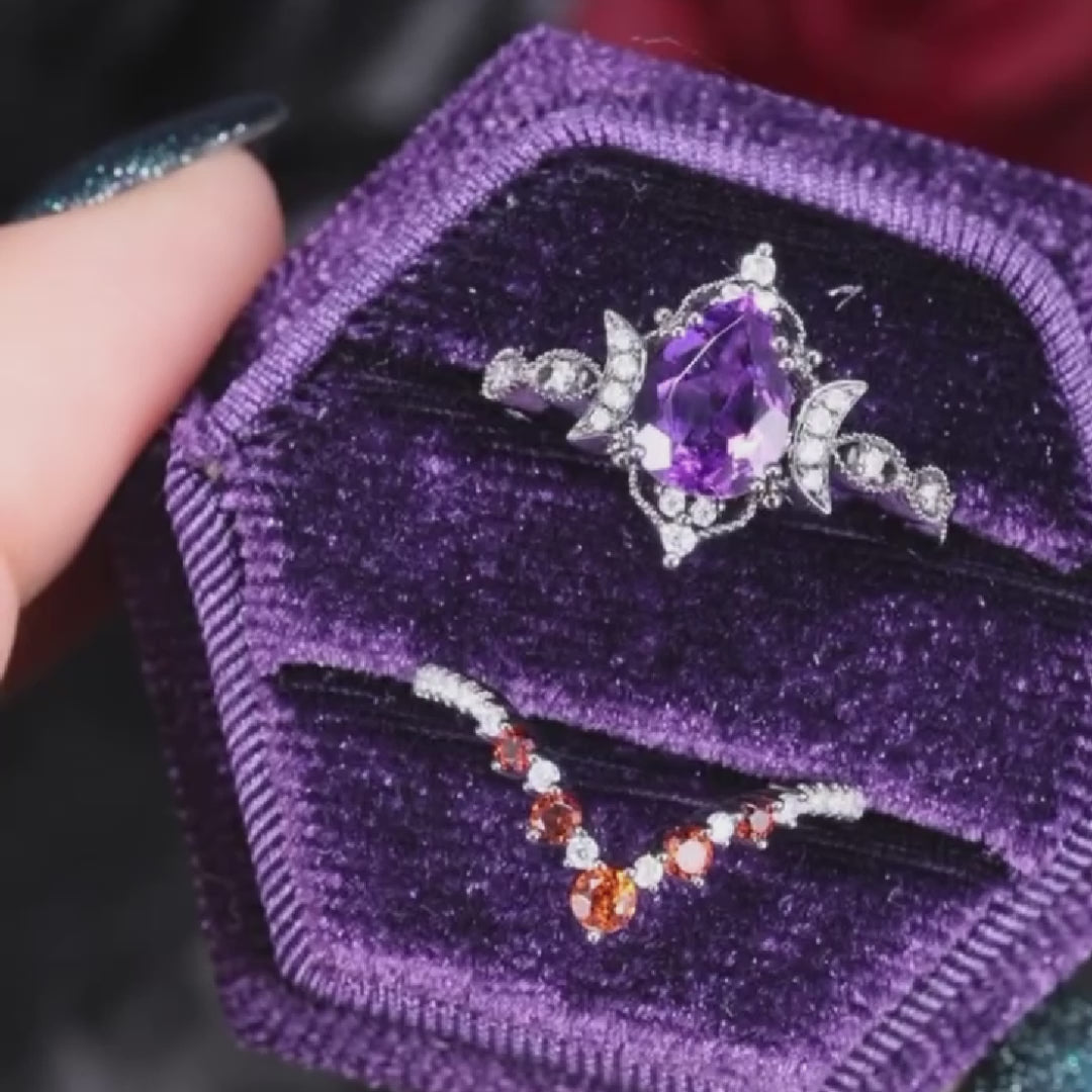 Crescent Moon | Pear Cut Amethyst & Garnet Ring Set 2pcs - Waning Moon