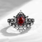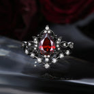 Crescent Moon | Pear Cut Garnet Galaxy Black Gold Engagement Ring Set 2PCS