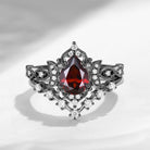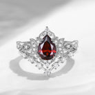 Crescent Moon | Pear Cut Garnet Galaxy Engagement Ring Set 2PCS