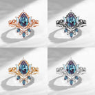 Pear Cut Lab Alexandrite Engagement Ring Infinity Ring Vintage Style Cluster Moon Wedding Ring Set 2pcs