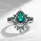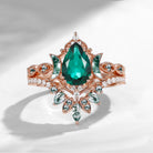 Crescent Moon | Pear Cut Lab Emerald 'Ultra Galaxy' Engagement Ring Set 2pcs