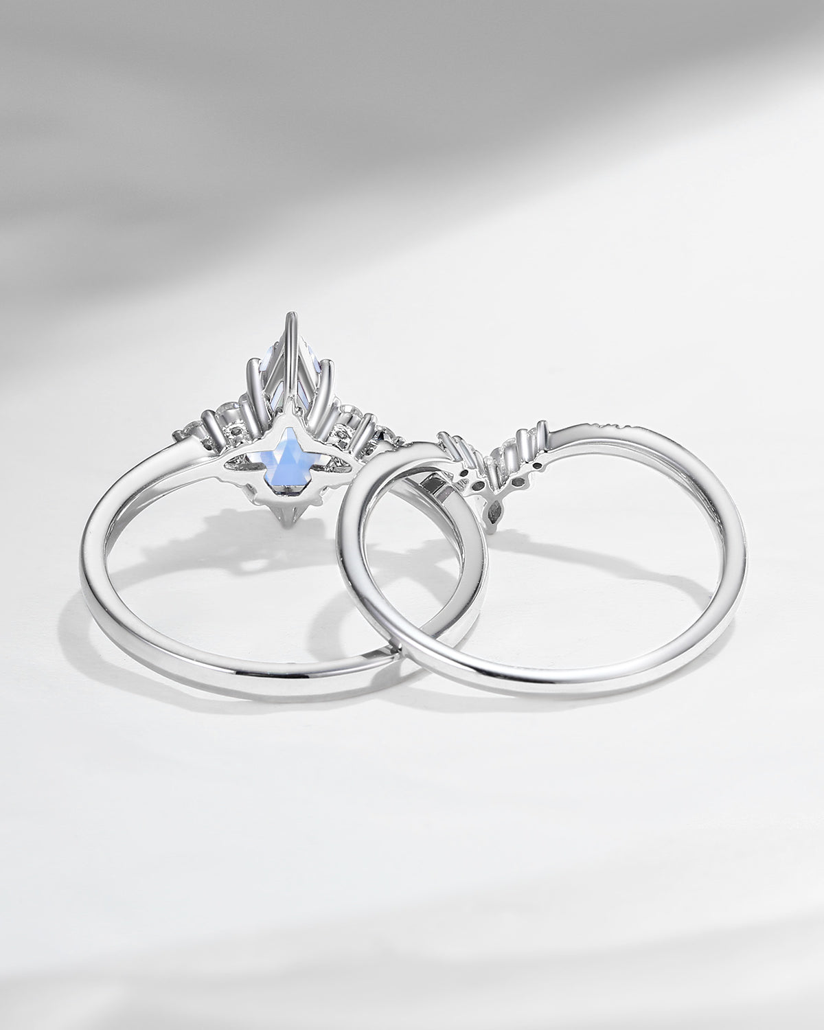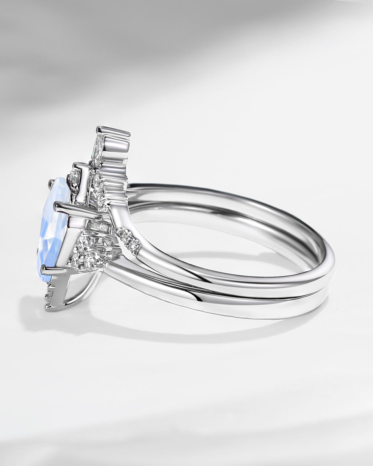 Moonstone Engagement Ring Black Gold Moon Crescent Ring Set 2pcs Pear Shaped Engagement Ring Alternating Ring Anniversary Gift