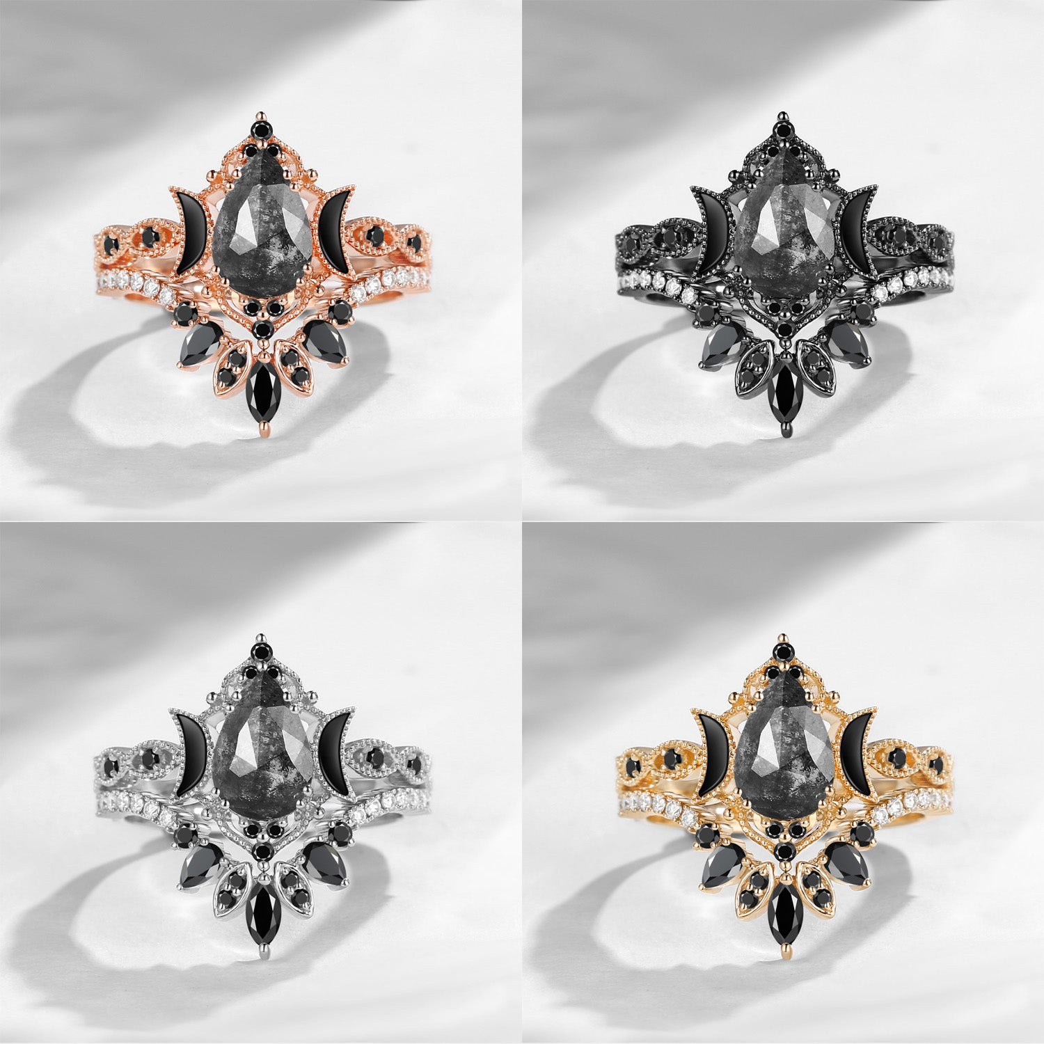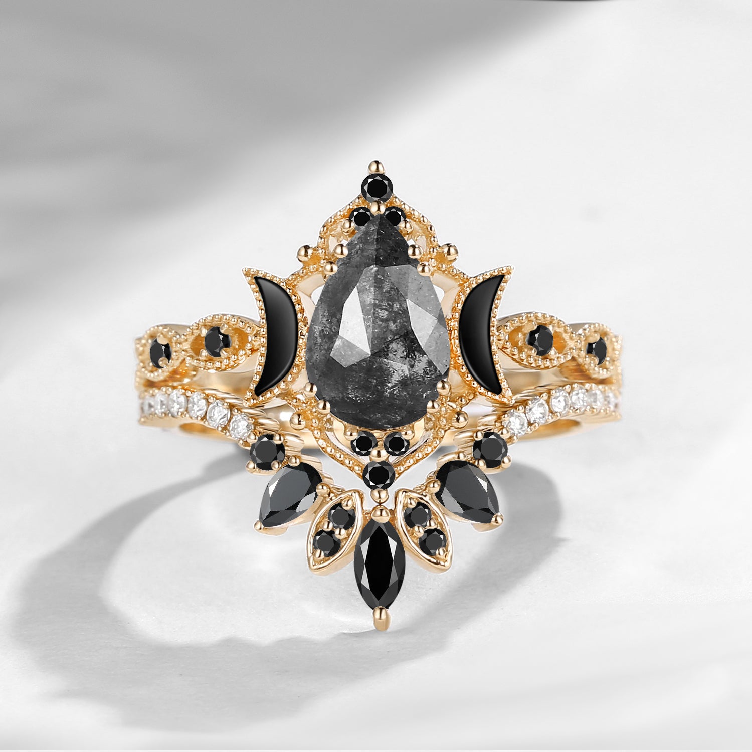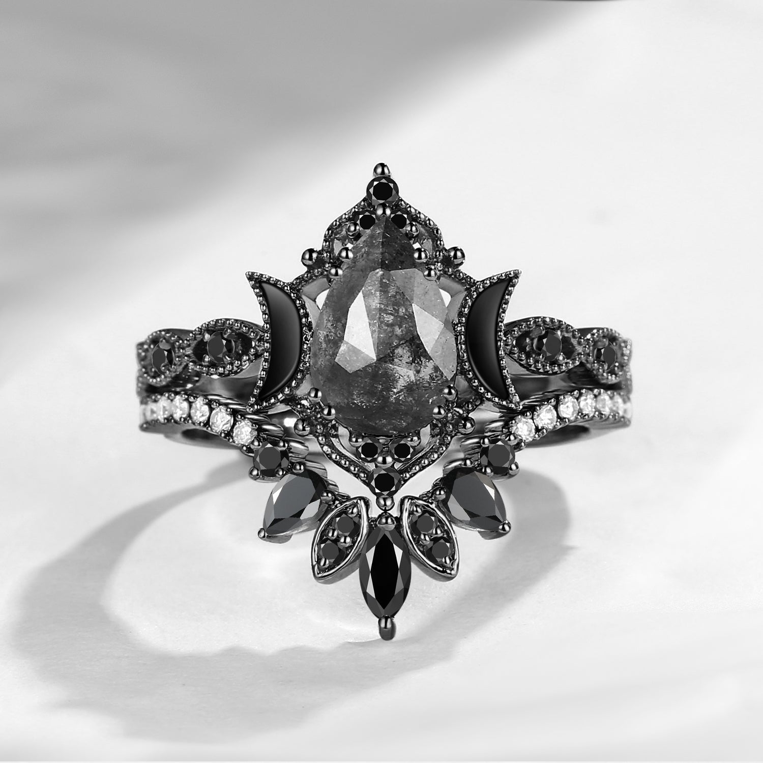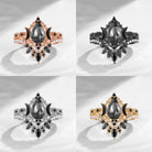 Crescent Moon | Pear Cut Salt & Pepper Diamond 'Ultra Galaxy' Engagement Ring Set 2pcs