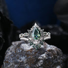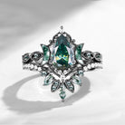 Pear Cut Teal Moissanite Engagement Ring Infinity Ring Vintage Style Cluster Moon Wedding Ring Set 2pcs