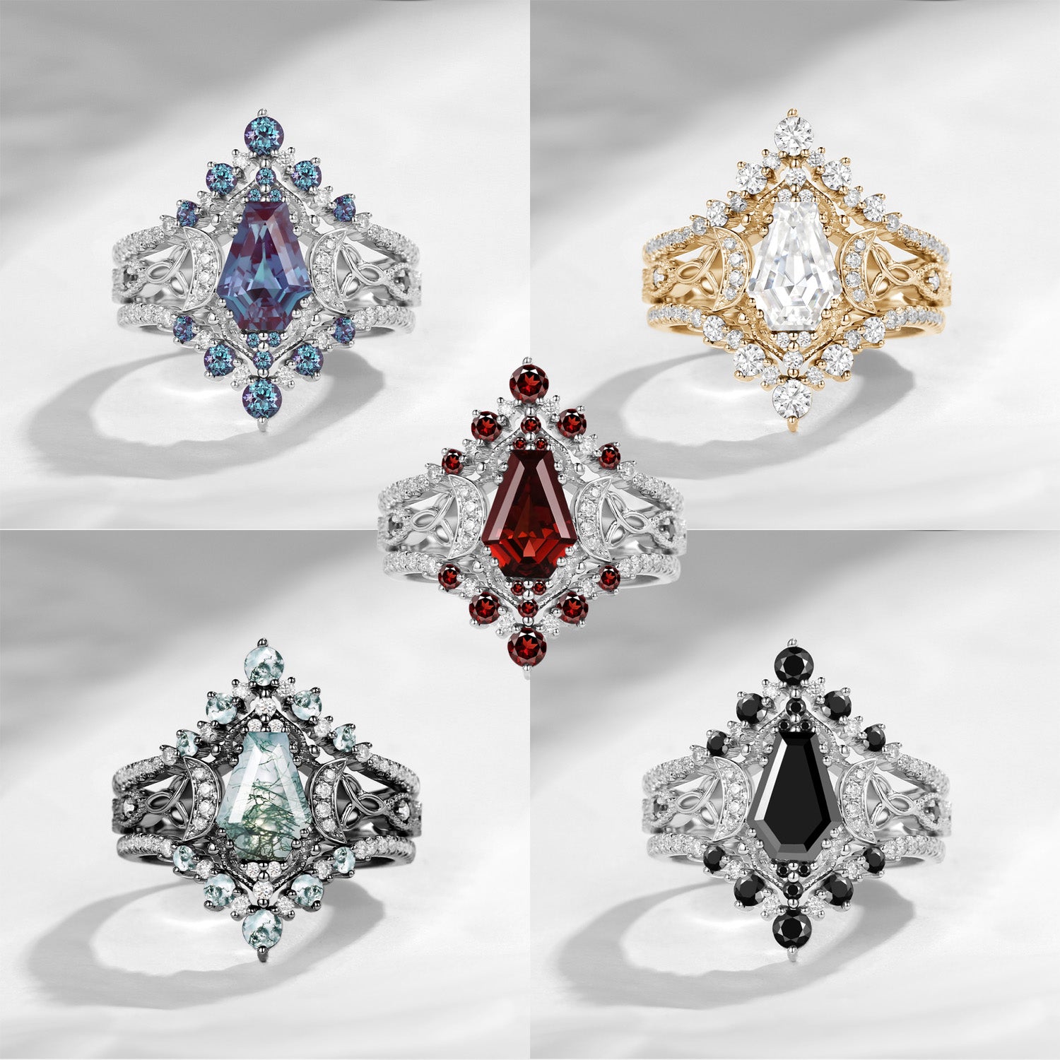 Crescent Moon | Celtic Unique Coffin Lab Alexandrite Infinity Engagement Ring Set 3pcs