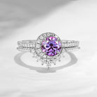 Crescent Moon | Unique Purple Moissanite Engagement Ring Set 2pcs - Full Moon