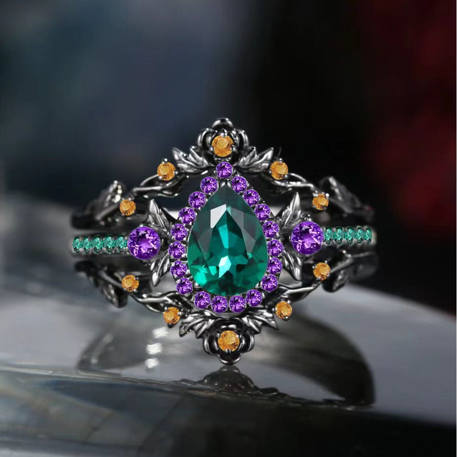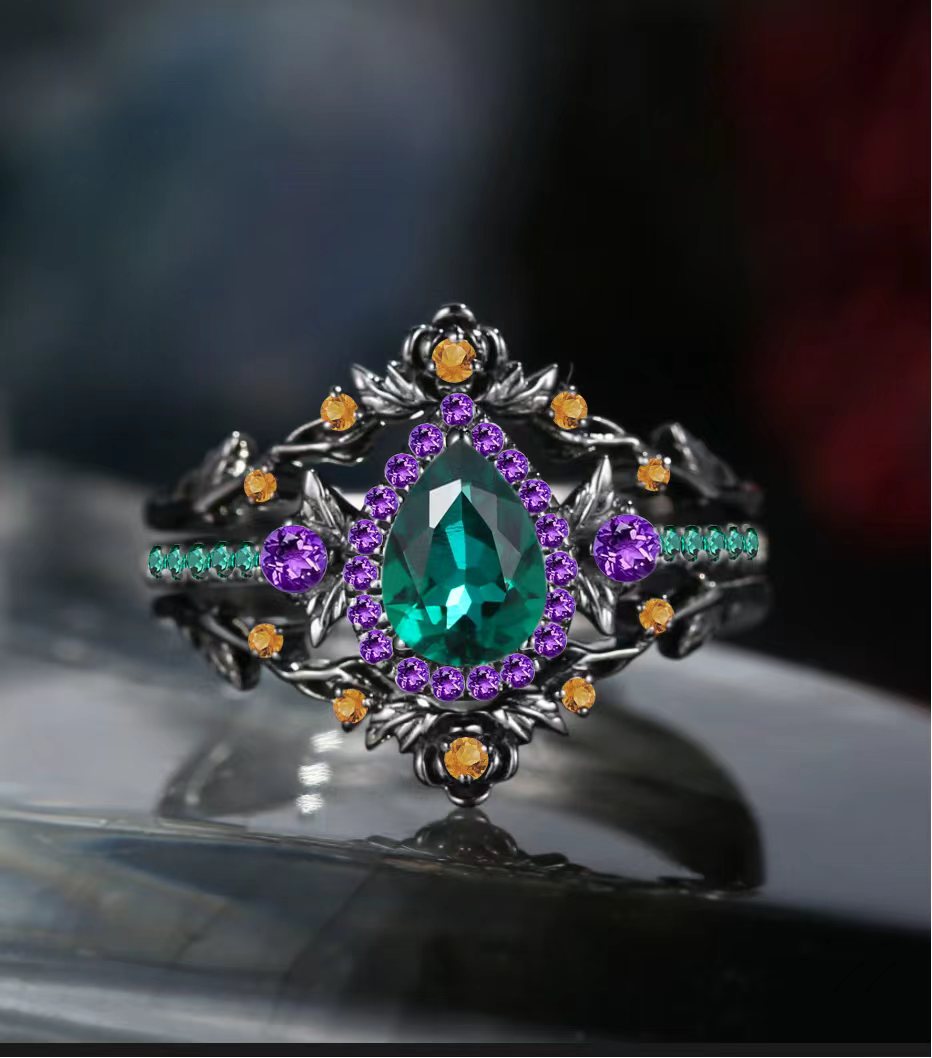 Side stones: Lab emerald, amethyst, citrine.