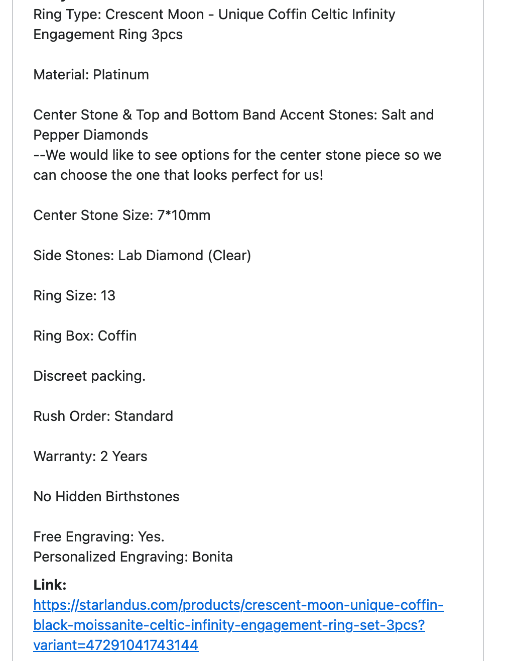 ring as listed, ring sized updated to US 10.75