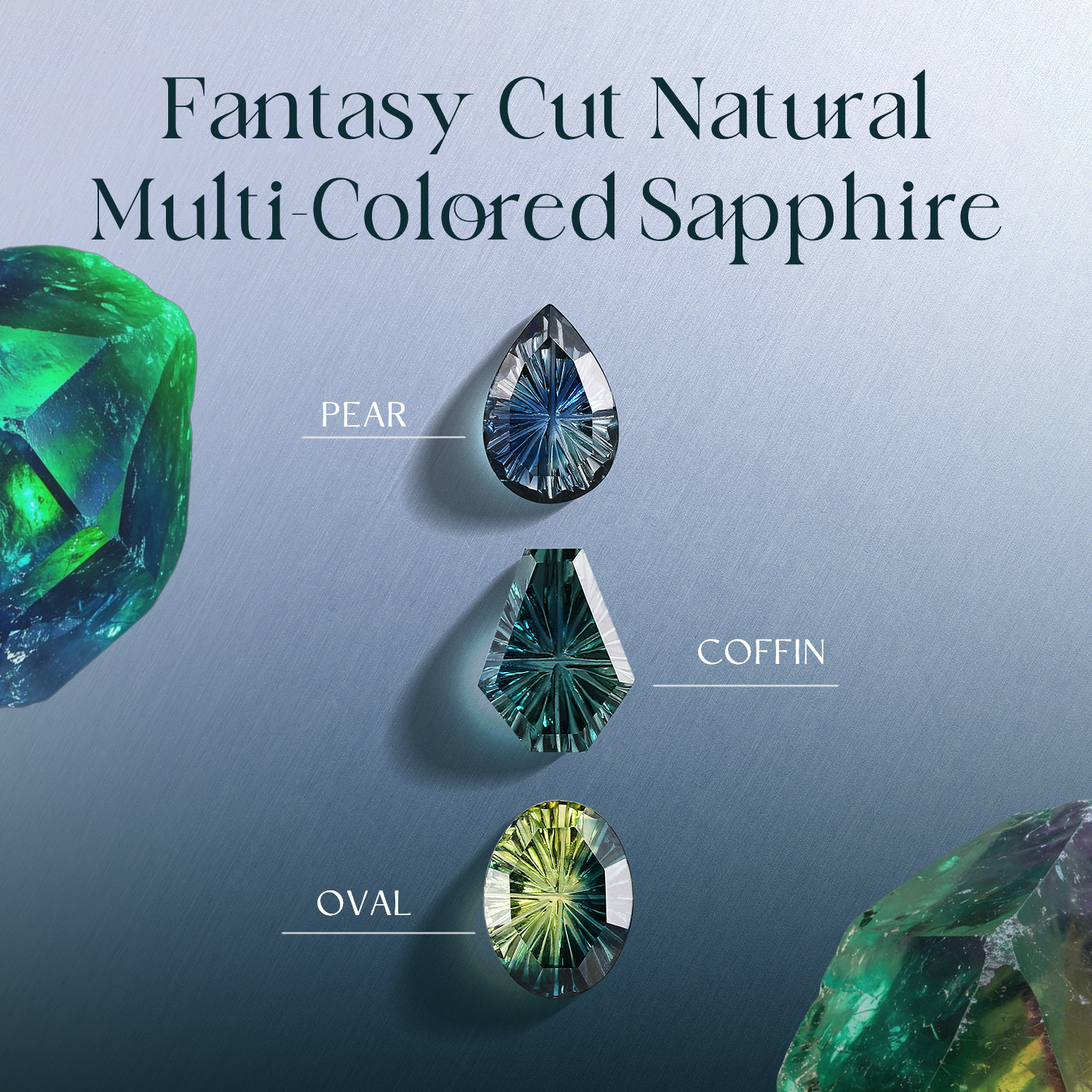 ⟢ Center Stone: Coffin Cut Natural Multi-Colored Sapphire, 6*8mm, firework cut