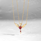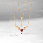 Feather Angel Wing Lab Ruby Heart Cut Couple Necklaces Set 2pcs - Cupid's Arrow