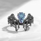 Firework Cut Coffin Lab Alexandrite Vintage Inspired Black Gold Engagement Ring - Bat Ring