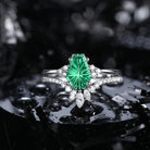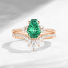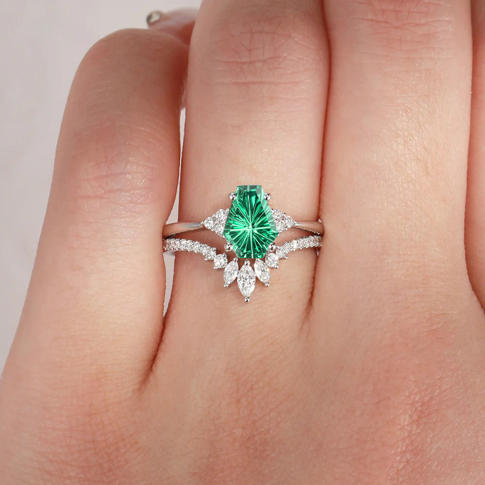 Firework Cut Coffin Lab Emerald Engagement Set 2pcs - White Dress