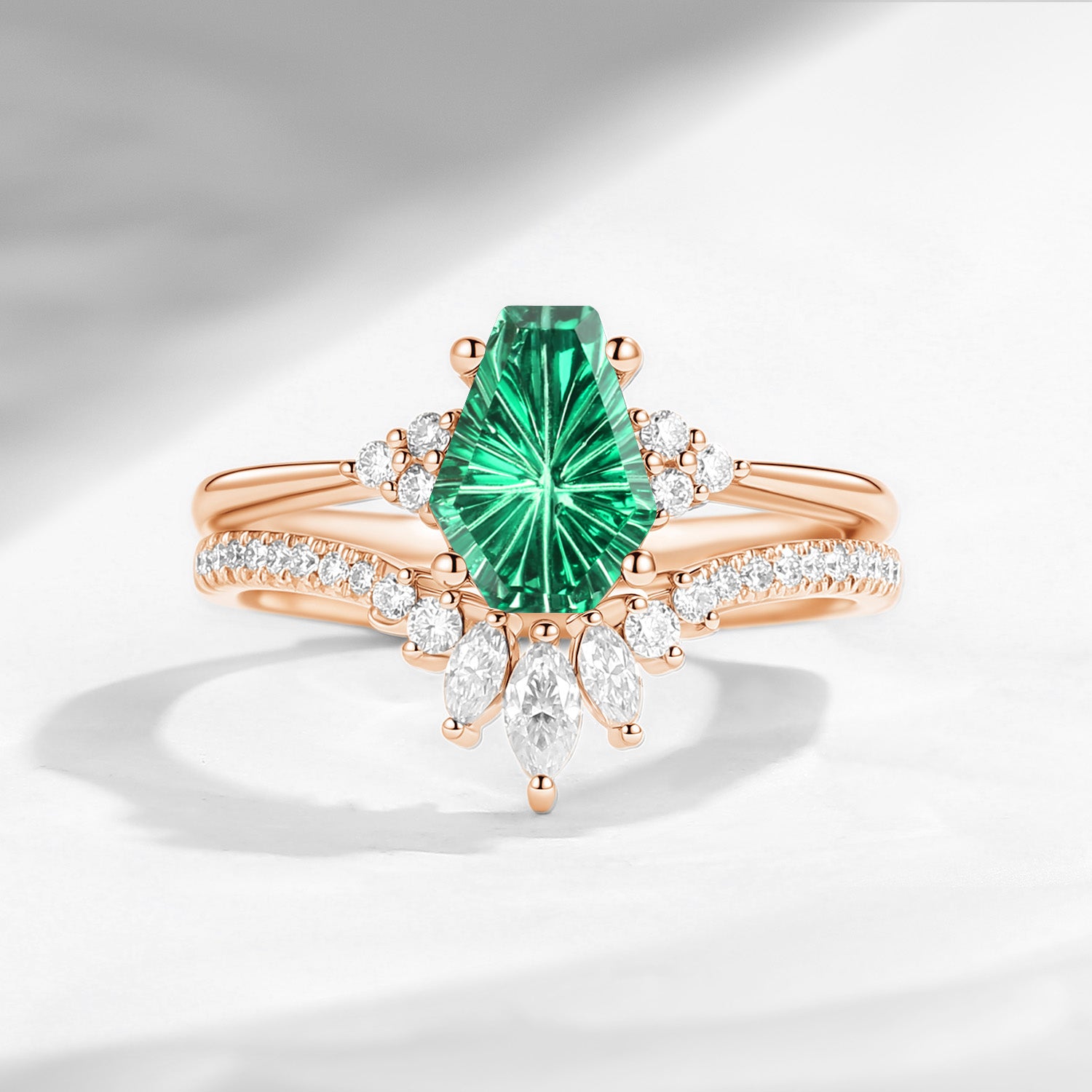 ⟢ Center Stone: Lab Emerald, Coffin Firework Cut