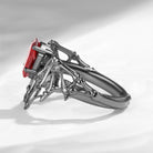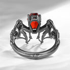 Garnet Coffin Cut Vintage Inspired Black Gold Engagement Ring - Bat Ring