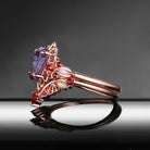 Gothic Coffin Shaped Lab Alexandrite Spider Inspired Engagement Ring Set 2pcs
