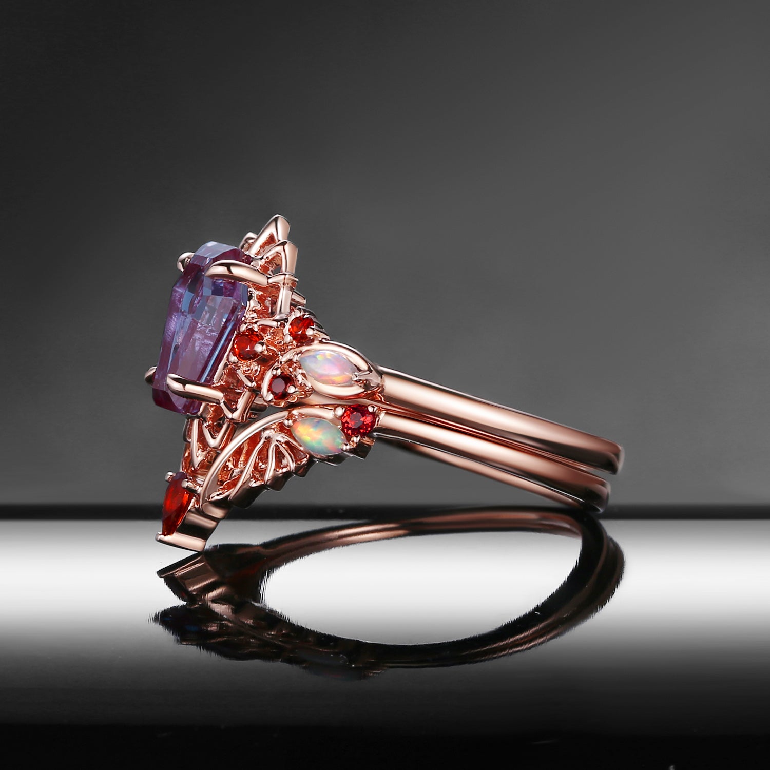⟢ Center Stone: 6x8mm Lab Alexandrite, coffin cut