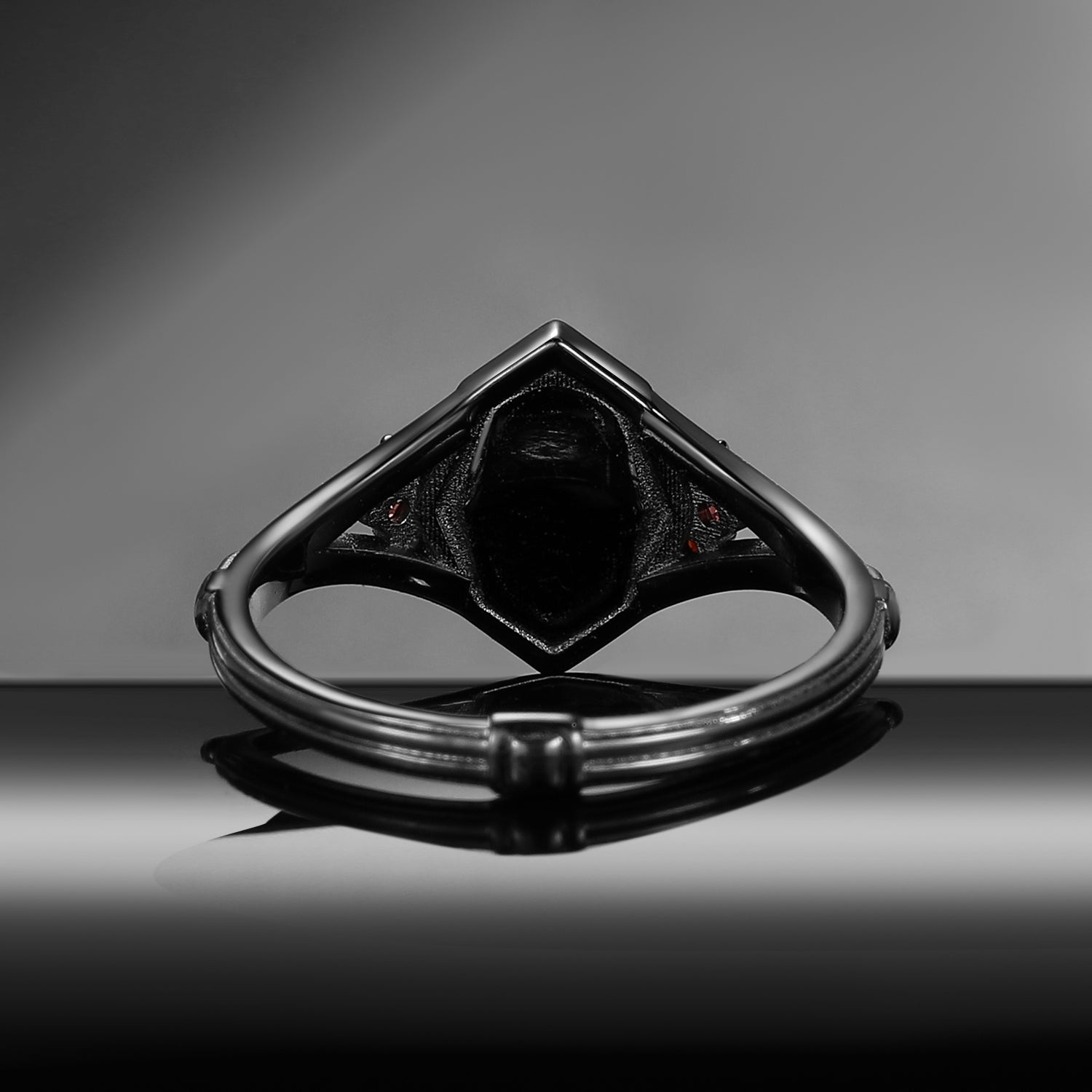 Gothic Crow Inspired Garnet Halloween Black Gold Engagement Ring