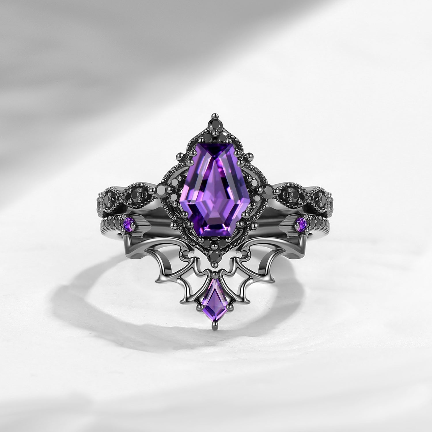 The ring is gorgeous! It also came in a beautiful coffin box. Of course, she said YES! 🖤 My custom ring is also a perfect fit!