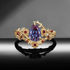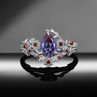 Gothic Nature Inspired Pear Cut Lab Alexandrite Alternative Bride 'Thorns & Roses' Bridal Set 2pcs
