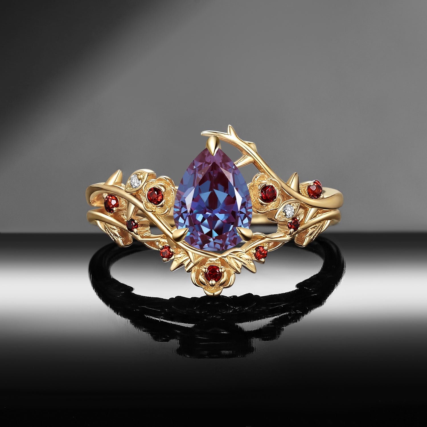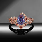 ⟢ Center Stone: Faceted Pear Cut Lab Alexandrite, 5*7mm; 6*8mm (As shown) and more.