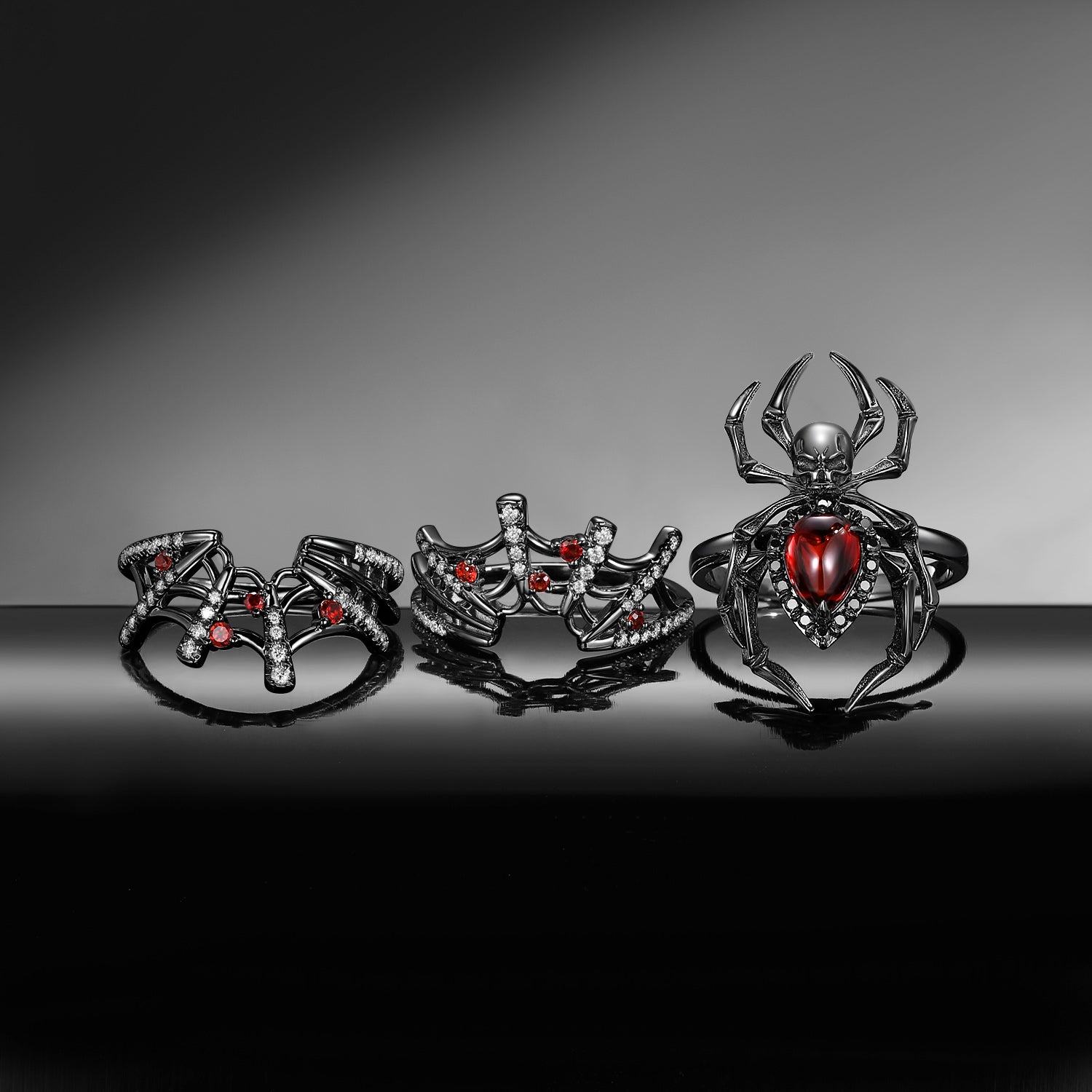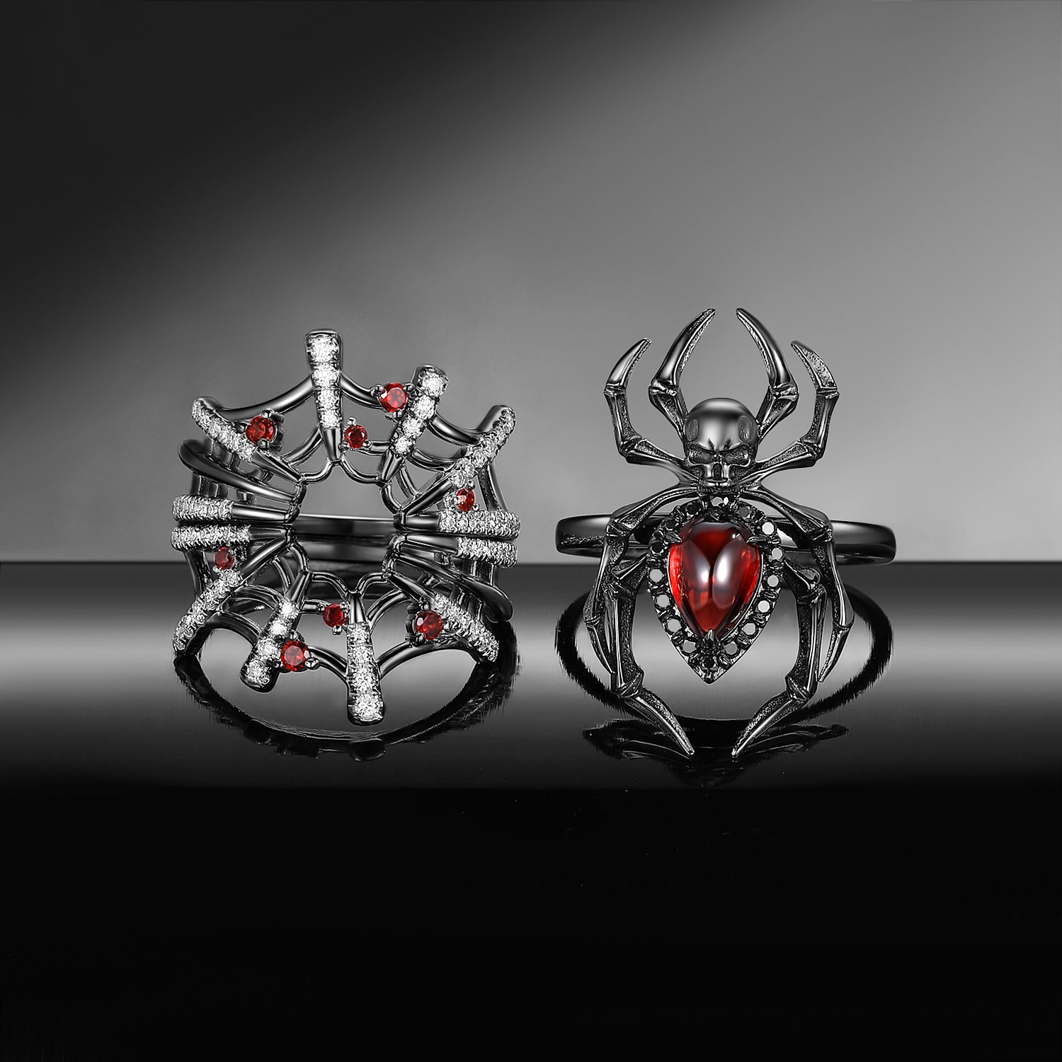 Gothic Pear Shaped Garnet Spider Inspired 'Disturbia Deluxe' Engagement Ring Set 3pcs