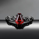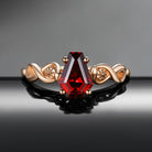Gothic Style Coffin Cut Garnet Infinity Twist Snake Engagement Ring - Serpent's Embrace