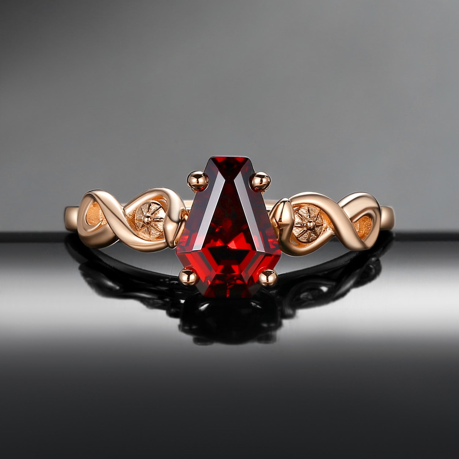 Vintage Style Coffin Cut Garnet Infinity Twist Snake Engagement Ring - Serpent's Embrace