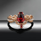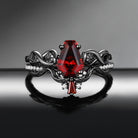 Gothic Style Coffin Cut Garnet Infinity Twist Snake Engagement Ring Set Bridal Set 2pcs - Serpent's Embrace