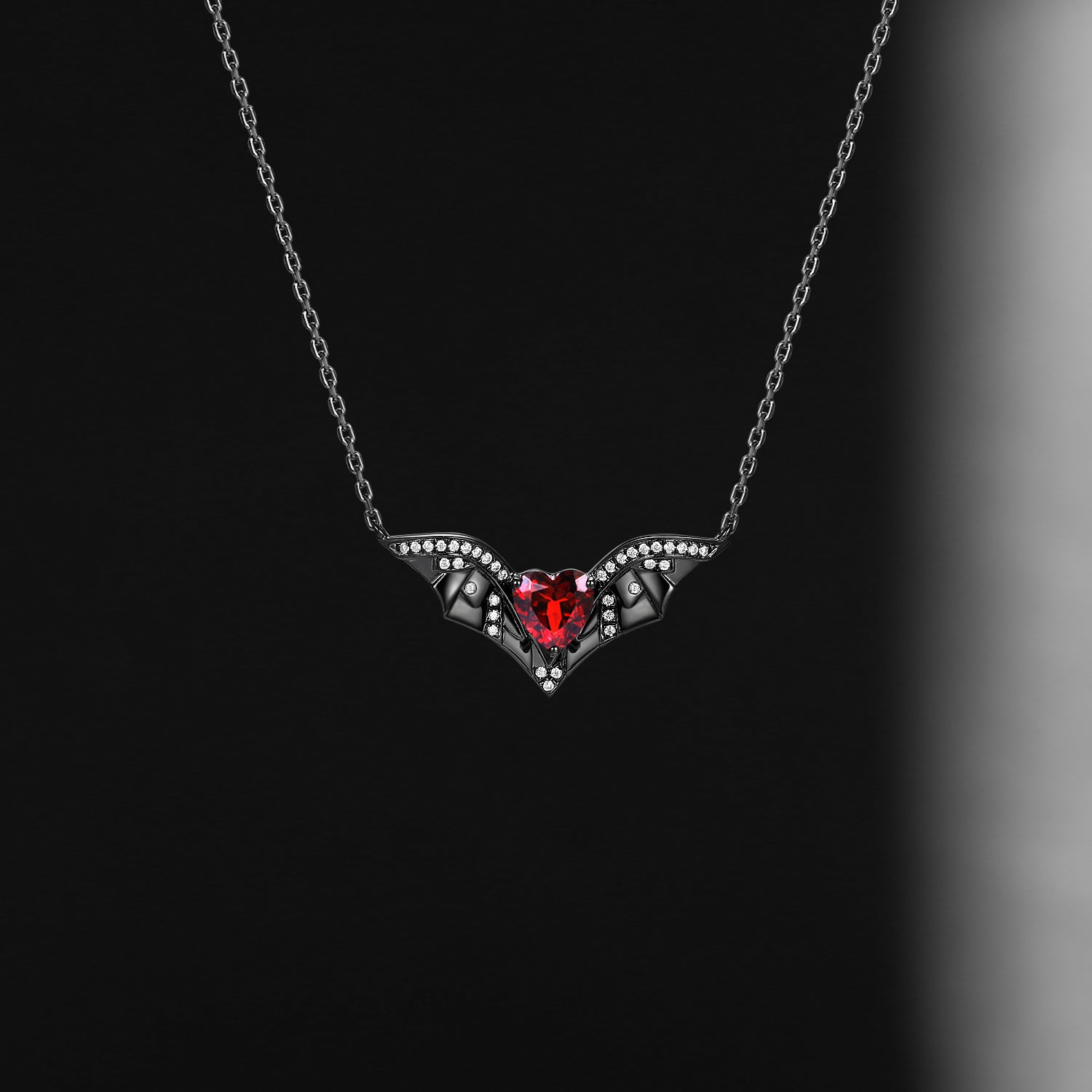 Gothic Style Coffin Garnet Bat Wing Inspired Black Gold Ring Jewelry Set - Bat Jewelry Box
