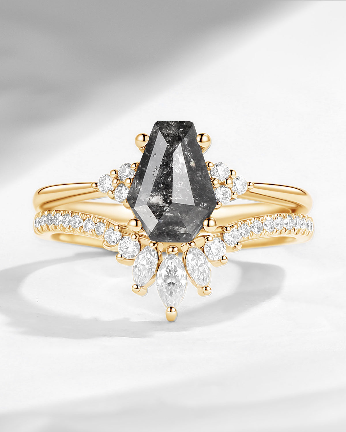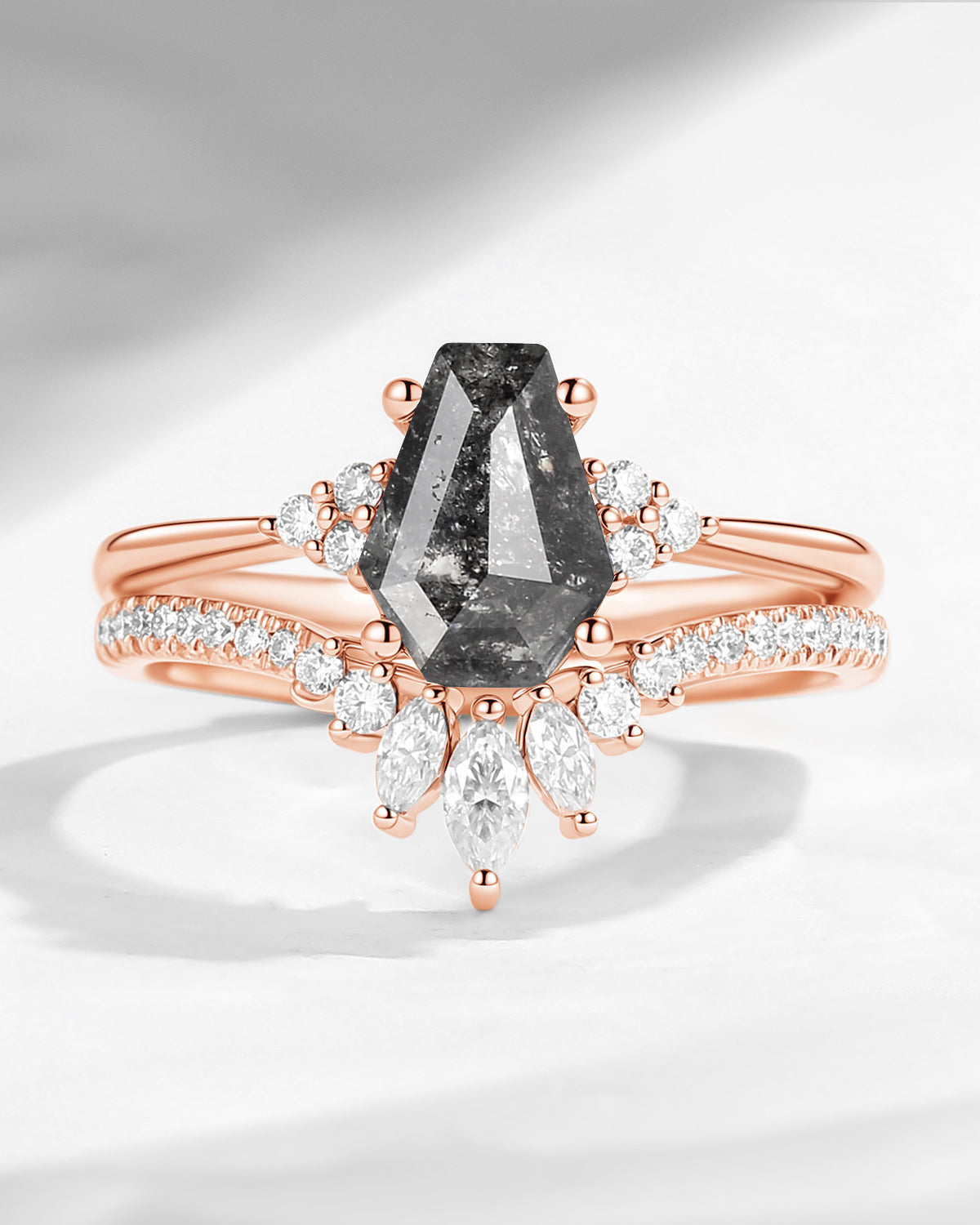 ⟢ Center Stone: Coffin Cut Salt And Pepper Diamond, 6*8mm