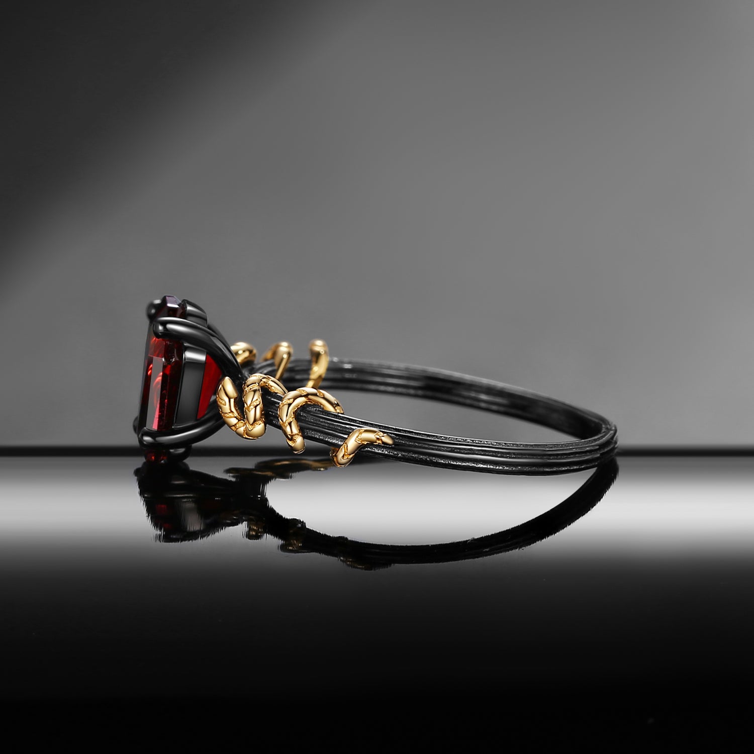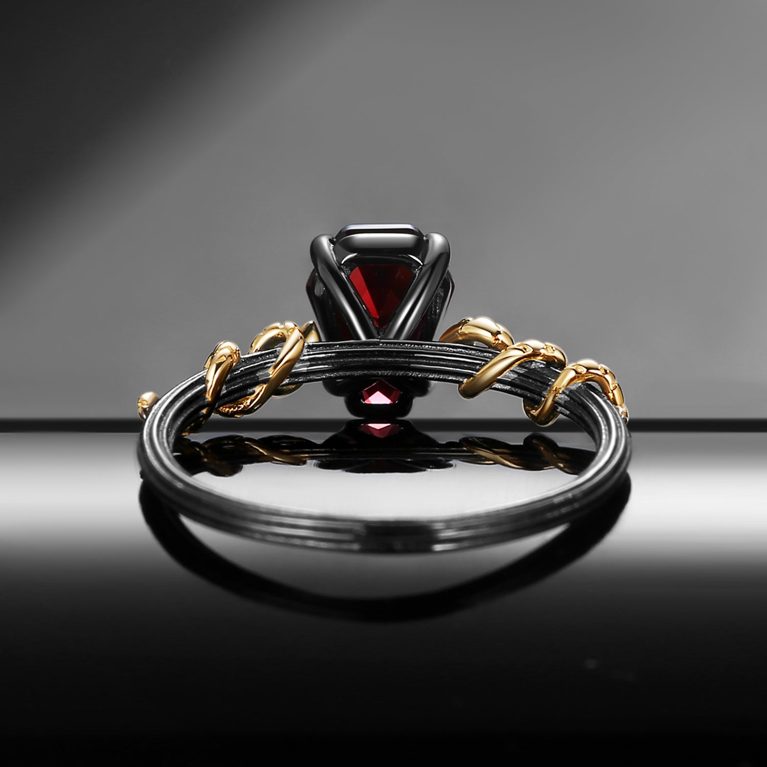 Gothic Twist Coffin Cut Garnet Two-Tone Gold Engagement Ring - Serpent's Embrace