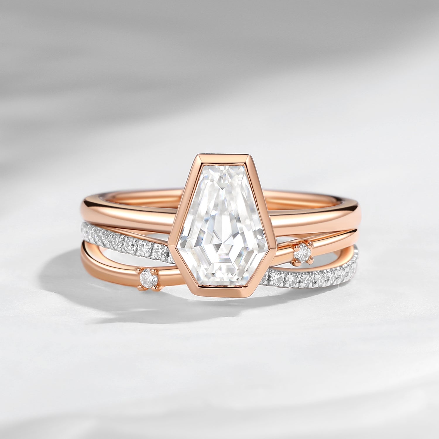 ⟢ Center Stone: Faceted Coffin Cut Moissanite, 6*8mm