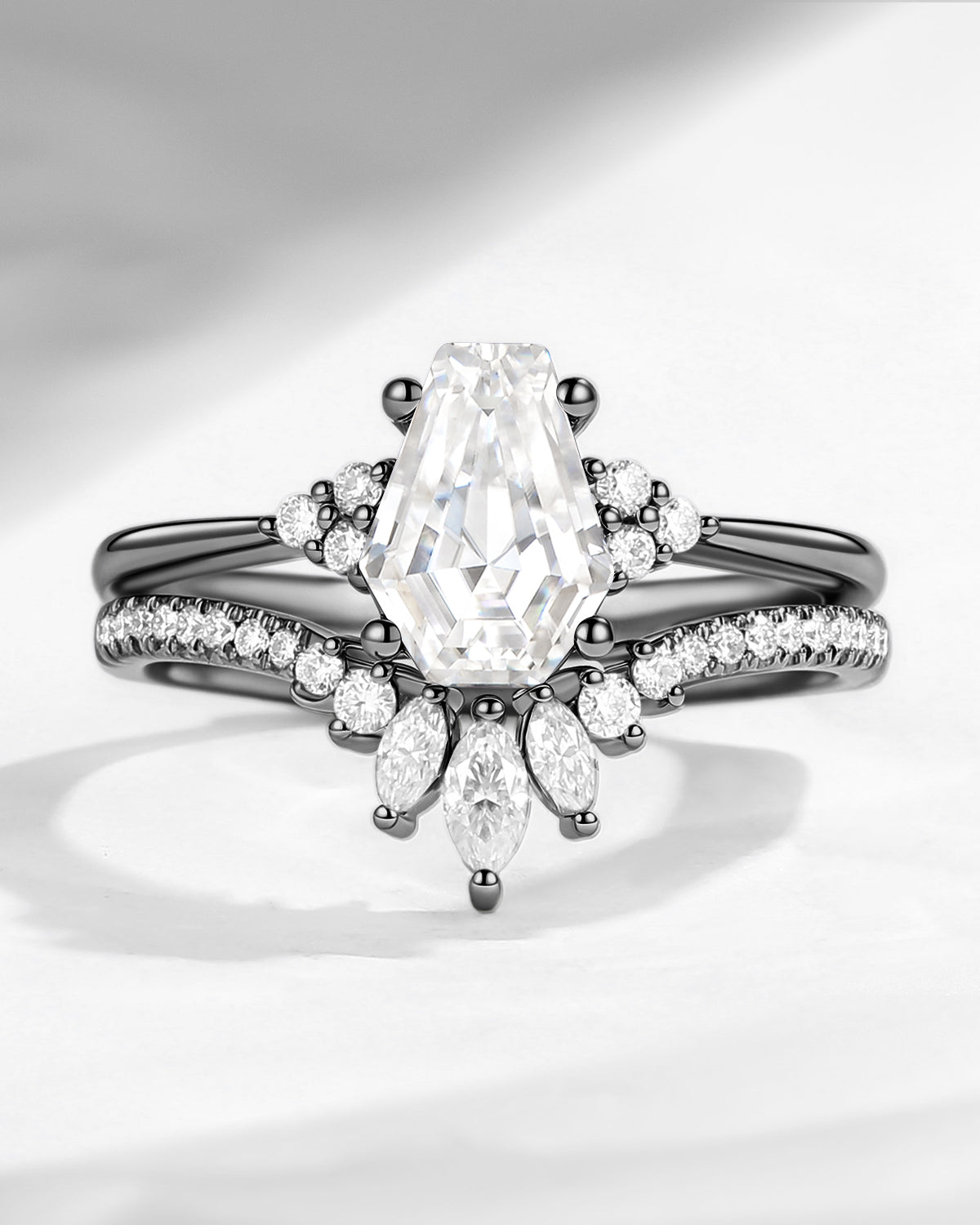 ⟢ Side Stone: Black Moissanite/Diamond, about 0.5ct