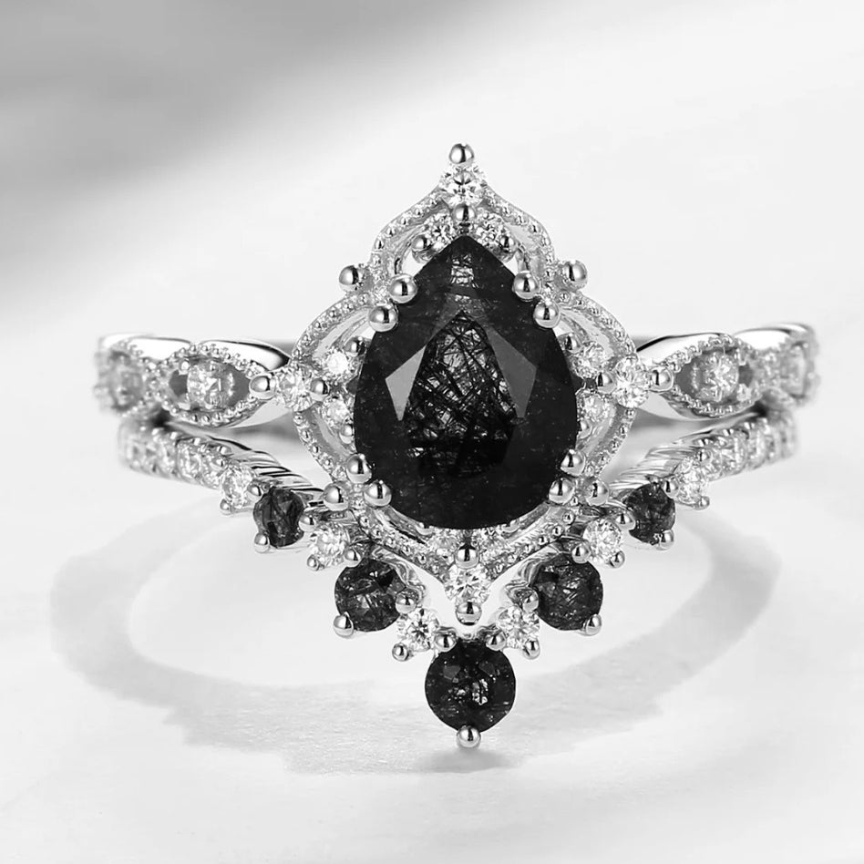 Side Stone: Black Rutilated Quartz and Lab diamond