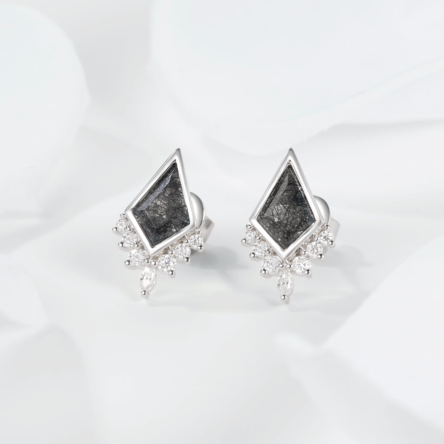 ⟢ Center Stone: Natural Black Rutilated Quartz, kite cut faceted