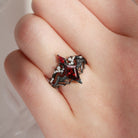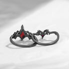 Kite Cut Garnet Bat Wing Inspired Thorns Engagement Ring Set 2pcs - Bat Ring