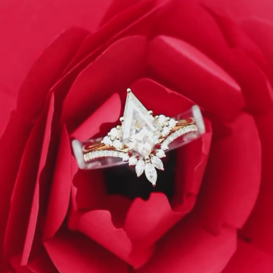 Kite Cut Moissanite Engagement Ring Set 2pcs - Electra