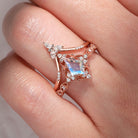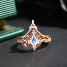 Kite Cut Moonstone Vintage Inspired Engagement Ring Set 2pcs