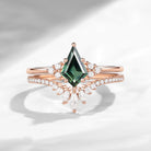 Kite Cut Natural Teal Saphhire Cluster Engagement Ring - Electra Vintage Bridal Ring Set Promise Ring Women