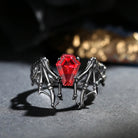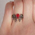 Lab Ruby Coffin Cut Vintage Inspired Black Gold Engagement Ring - Bat Ring
