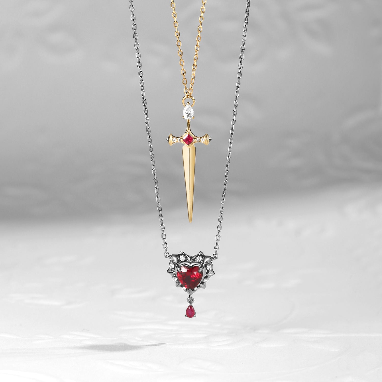 Lab Ruby Heart Cut Couple Necklaces Set 2pcs - Cupid's Arrow