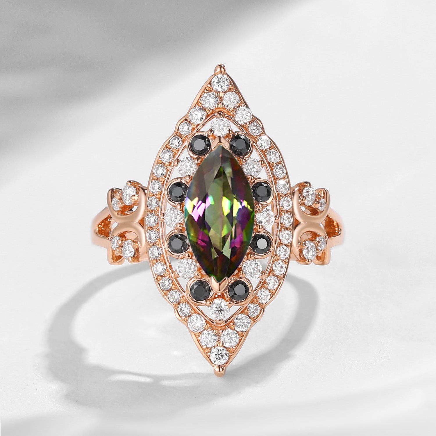 Maximalist Style Vintage Inspired Marquise Cut Mystic Topaz Engagement Ring