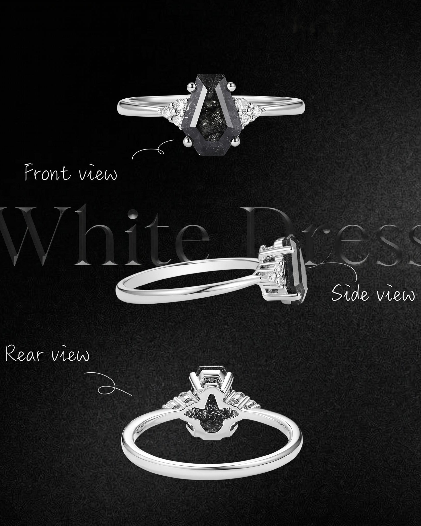 - Stone 1: Coffin Shaped Moissanite, 5*7mm