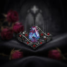 Nature Inspired Gothic Coffin Cut Lab Alexandrite 'Thorns & Roses' Bridal Set 2pcs