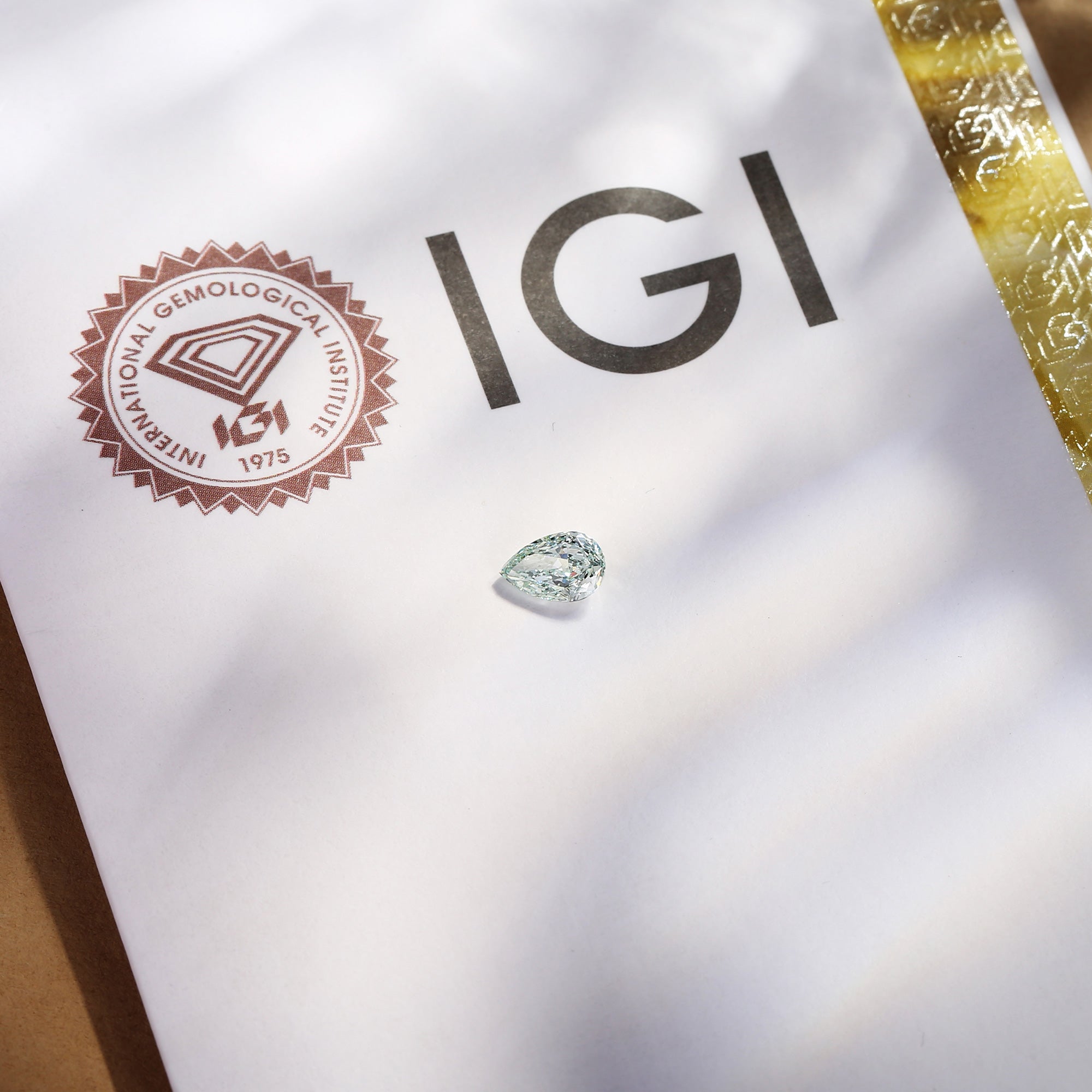 ⟢ Center Stone: Pear Shaped Faceted Green Lab Diamond, about 1ct