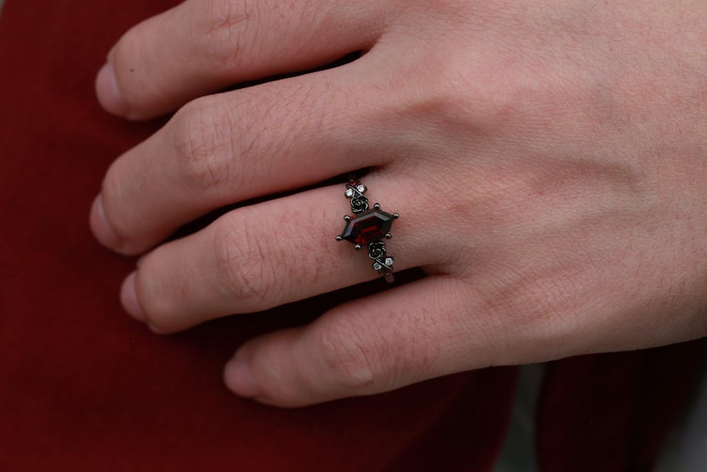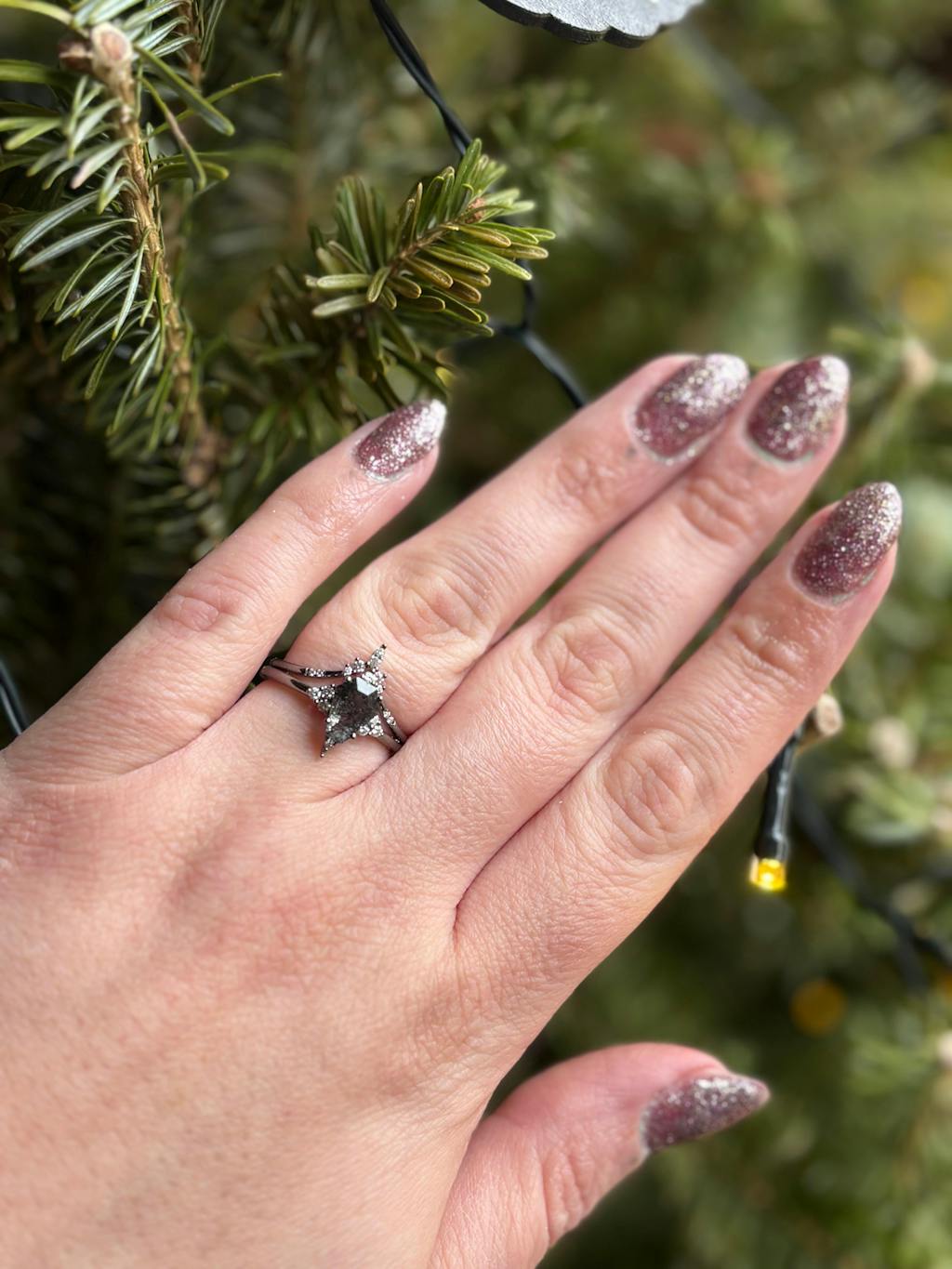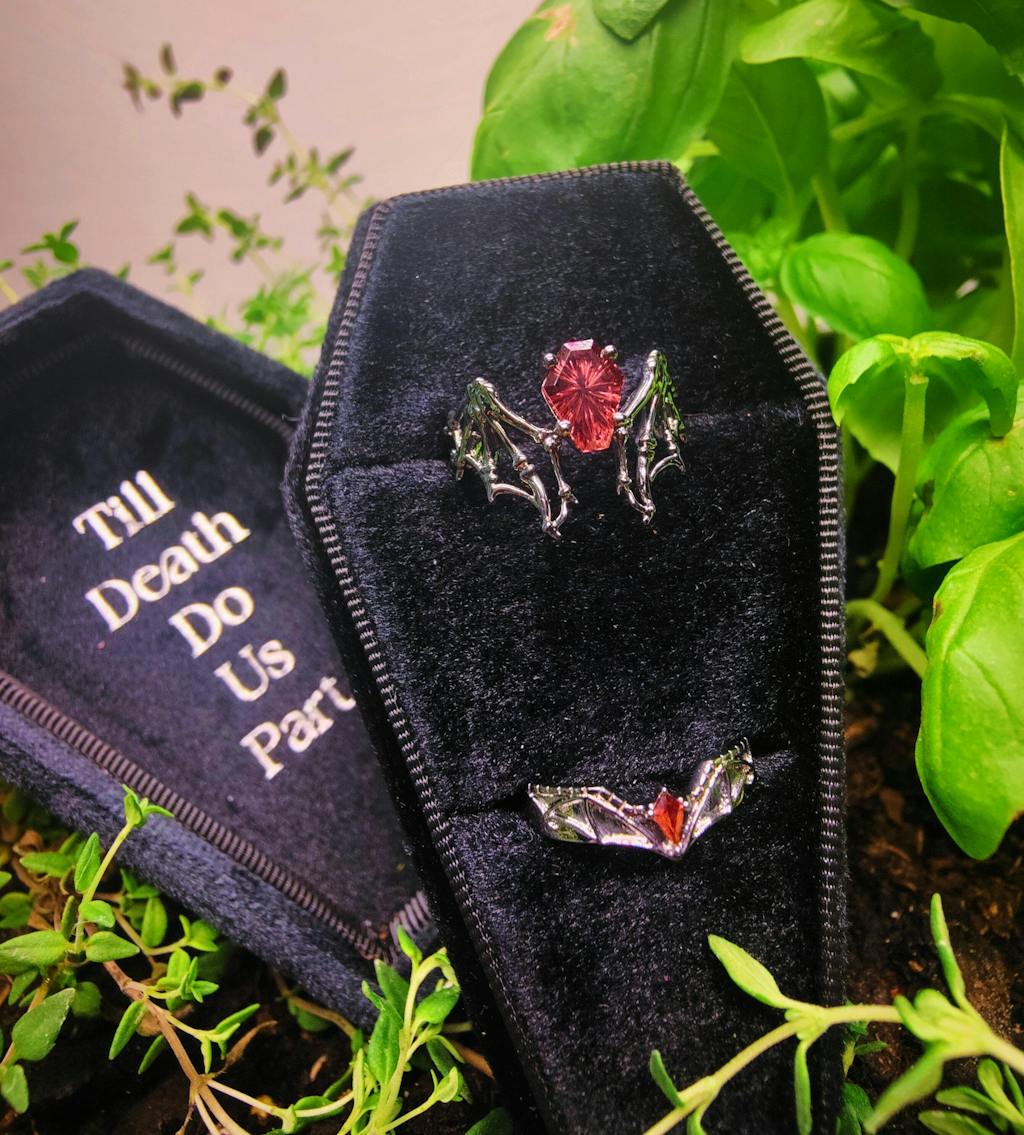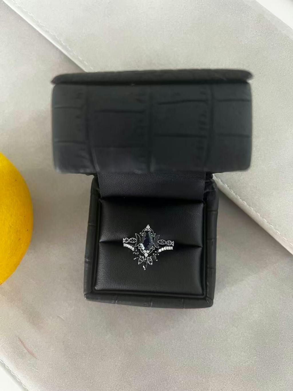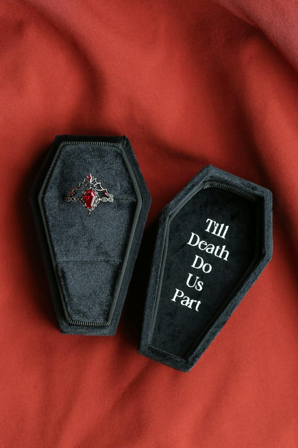The ring is gorgeous! It also came in a beautiful coffin box. Of course, she said YES! 🖤 My custom ring is also a perfect fit!