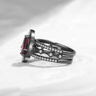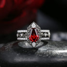 Nontraditional Coffin Cut Garnet Vampire Shield Engagement Ring Set 3pcs