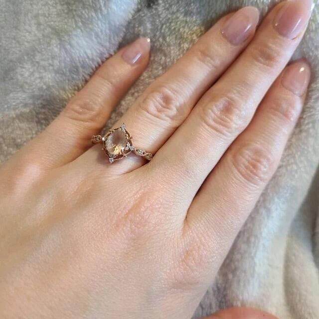 Oval Peach Morganite Engagement Ring Set 2PCS