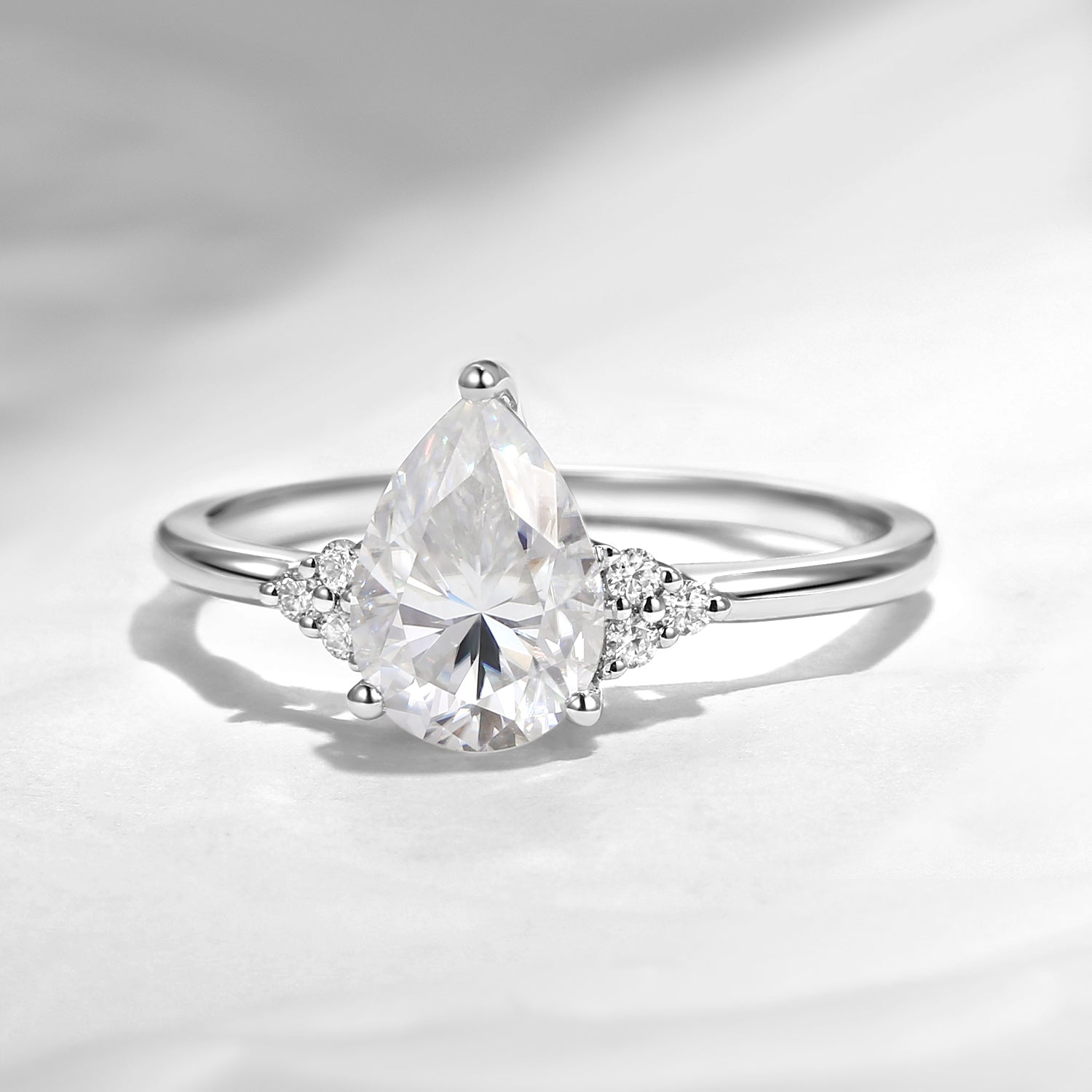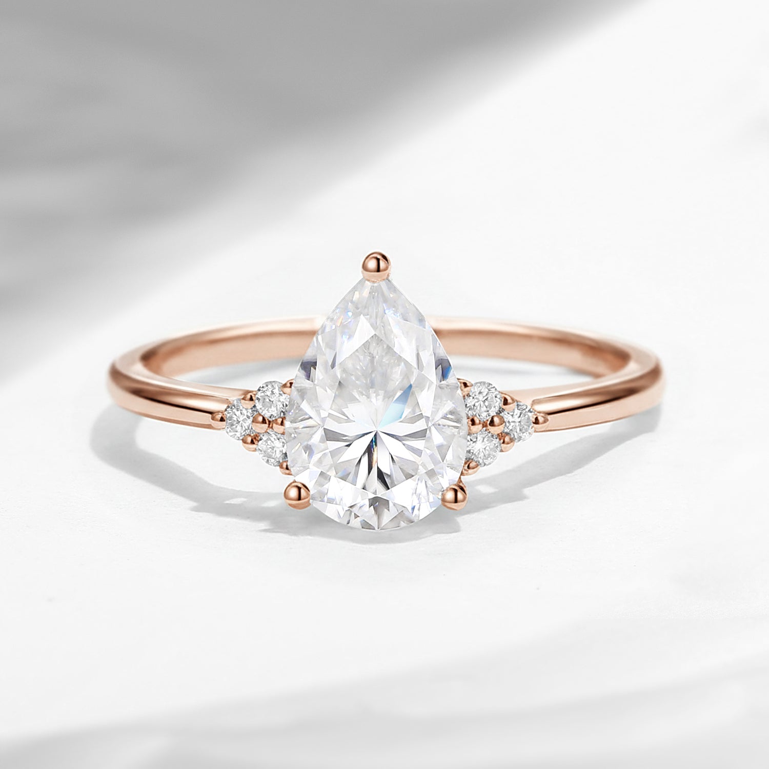Pear Cut Classic Cluster Moissanite Engagement Ring