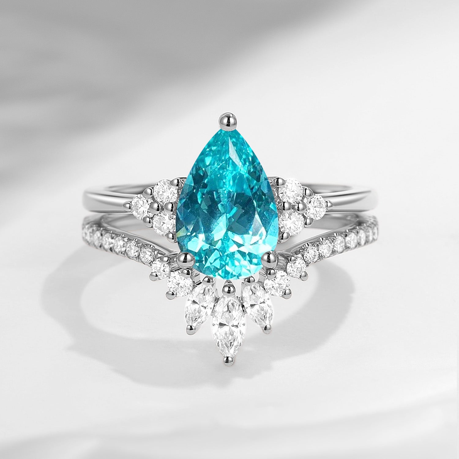 Lab Paraiba Engagement Ring Pear Shaped Bridal Set 2pcs Cluster Wedding Ring Unique Galaxy Anniversary Ring